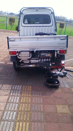 Kさんの依頼により運搬です! 早速バラシはじめました。 引き取り前の情報どうり オイルに水が混じってこんな状況 コーヒー牛乳の様です。 これからコツコツ直して走らせるとのことで~す。 私の今日の作業は、 サンバー用エンジンガードの製作を再び開始! シムス製 オイルとエレメント交換、 ついでにサスのストローク量など測定、 今後の改良の参考に、、