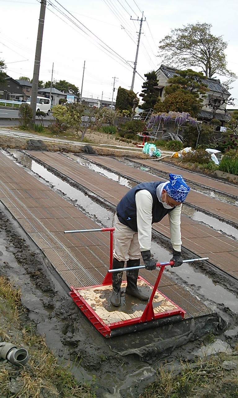 先週、準備をしていた 苗床に水を入れ 作業開始 毎年経験を重ね 作業がしやすくなっていきます 今回はこれ 苗箱を置いた上を 転がし苗箱の運搬 そして 人が乗り圧をかける そして今日は 製作中の自家用テーブルの 塗装 長男が 面白がって吹いてます・・・ PR |