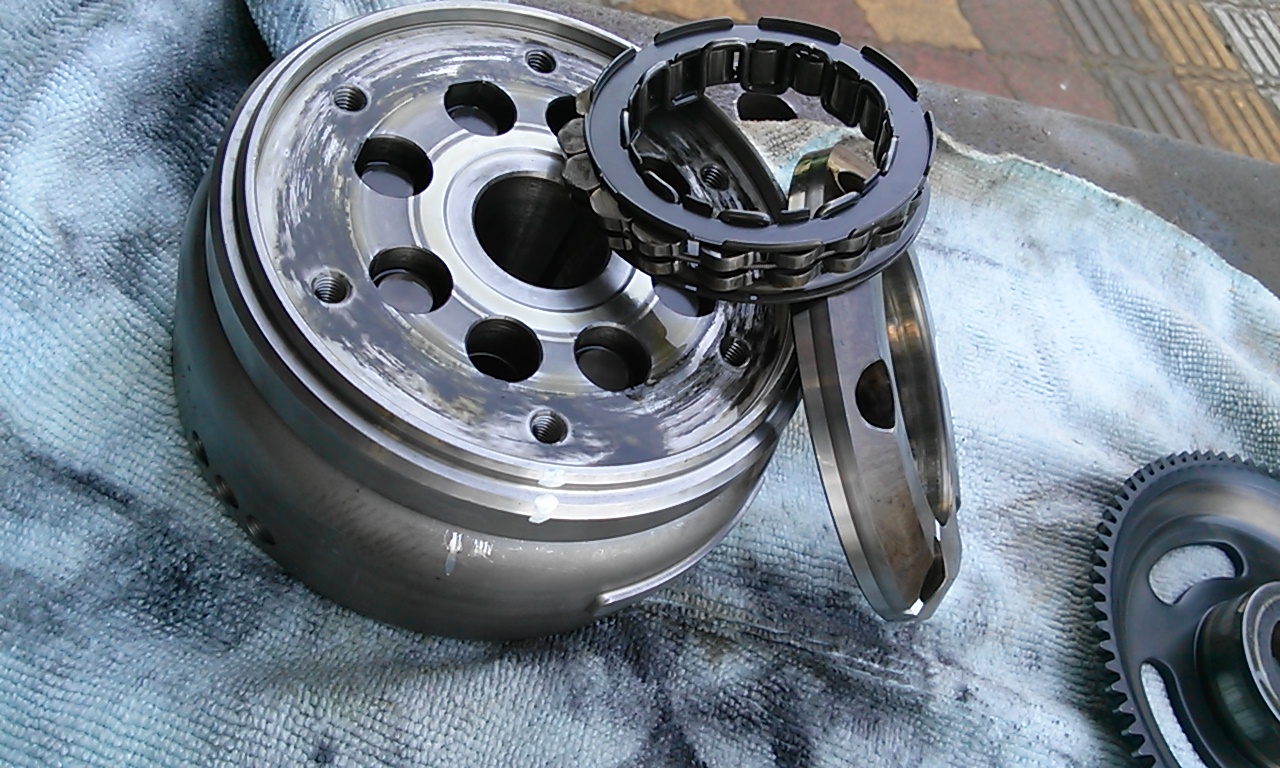 サンバー30ミリ車高アップキットの内容はこの様になります。もう~ずいぶん前に取り外したKLXのセルのワンウェイクラッチ部の分解