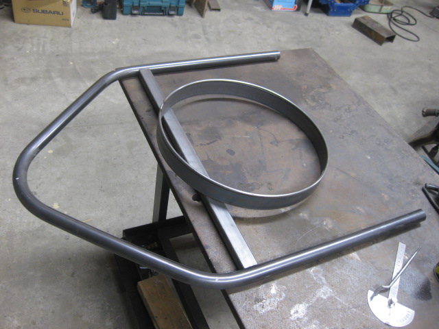 足となる曲げパイプの上にのせてみて