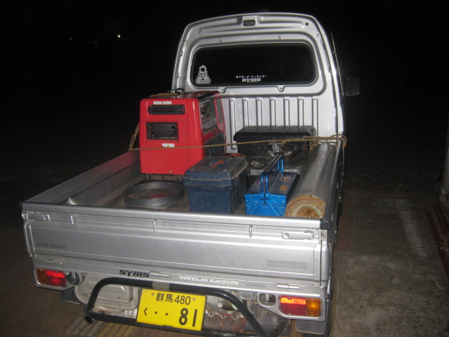 サンバー荷台にウインチの取り付け
