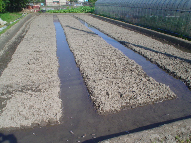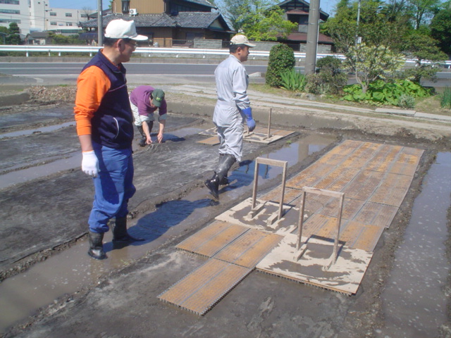苗箱を敷き詰めて
