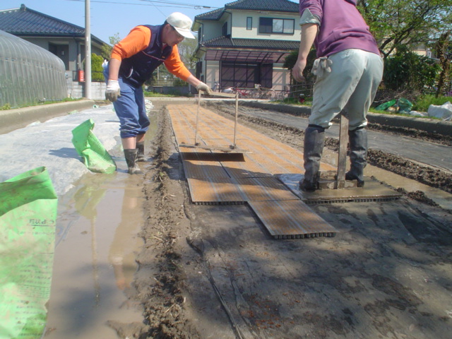 平らにした土の上に