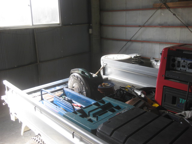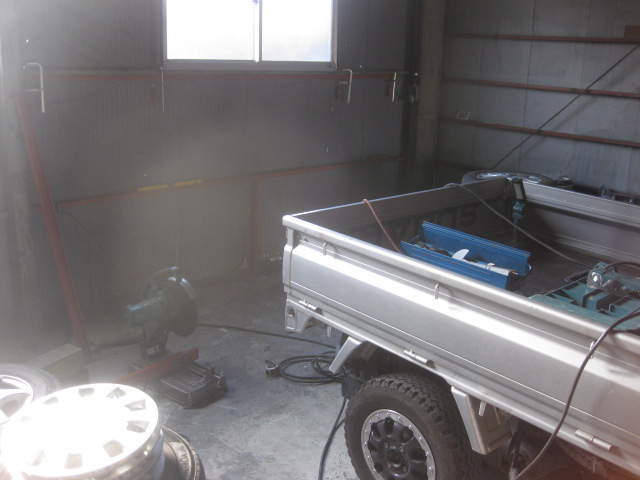 サンバー荷台にウインチの取り付け