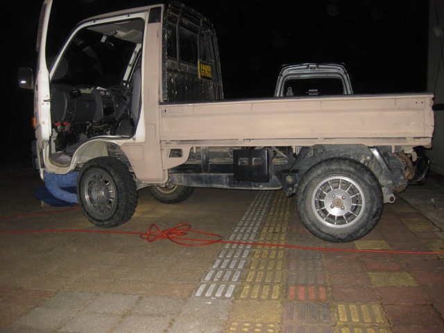 サンバー荷台にウインチの取り付け