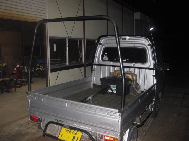 サンバー荷台にウインチの取り付け