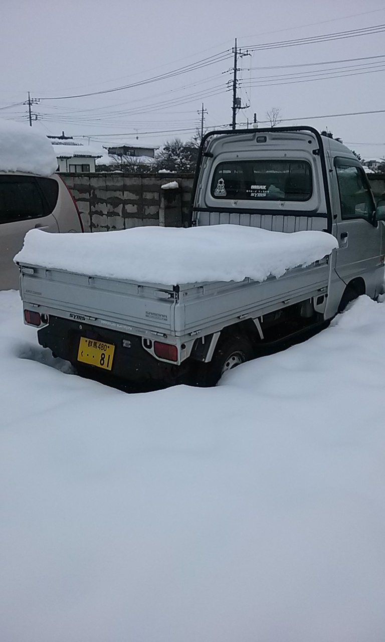 日頃の行いのせいでしょうか、 インフルエンザにかかり 2日程寝込んでいましたが、 熱が少し下がり 外に出てしまいました~ なぜか血が騒ぎ 近所をハイエースとサンバーで あまり用も無いのに 走ってしまいました。 やはり、4駆って頼もしいですね、 サンバーも車高アップとM/Sタイヤの選択で ガンガン走ります! 雪は50センチ程、、、積もりましたね~ PR |