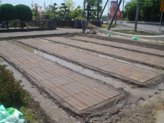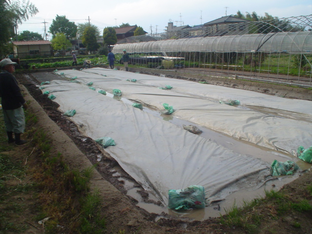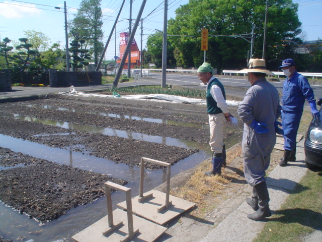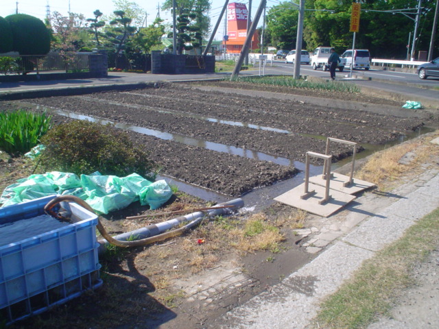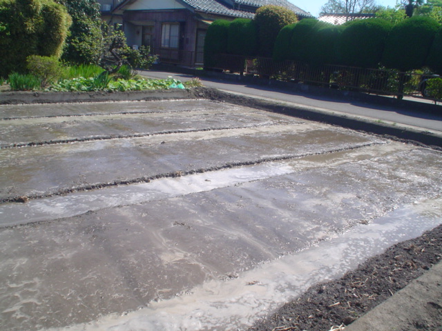 先週作った苗床には水を浸し