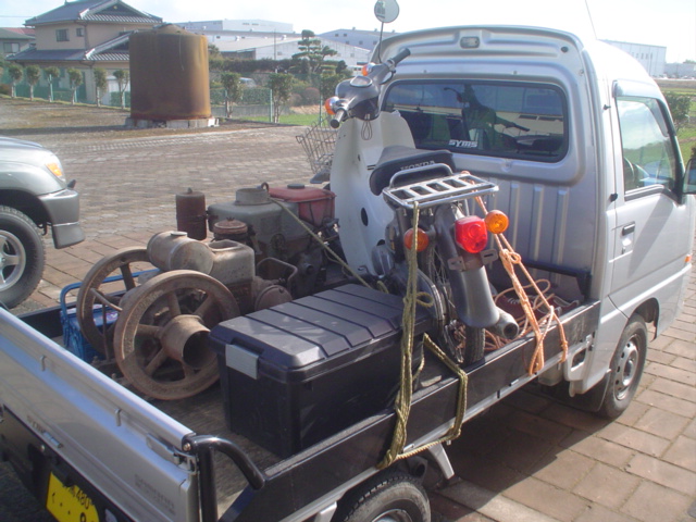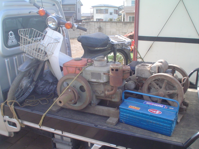 発動機2台の予定がカブも載せてきました。